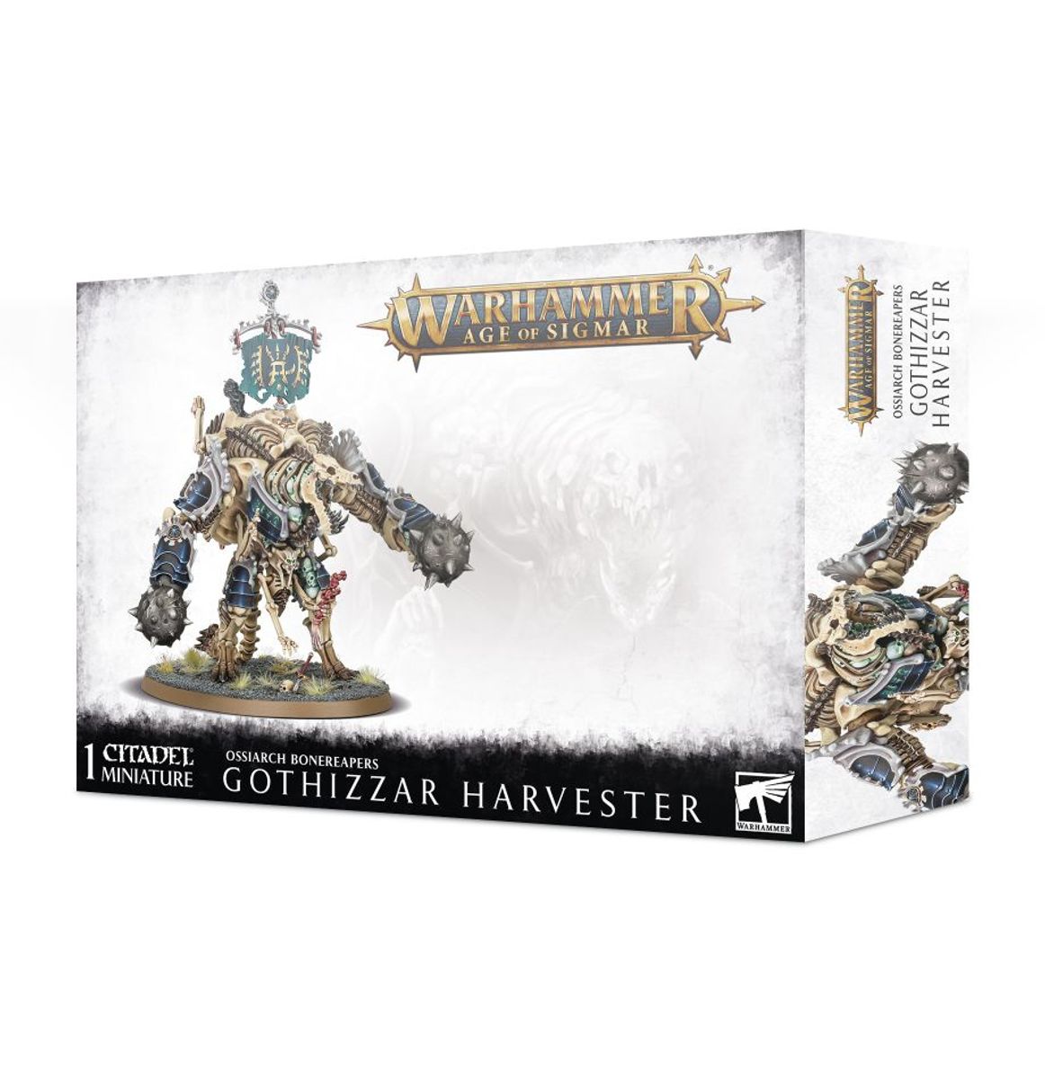 The Gothizzar Harvester is a murderous juggernaut of bone and metal that can smash through a shieldwall without breaking stride, but also a collector of the dead, its role to is provide as well as to destroy.